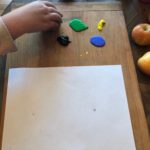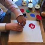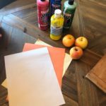 5. Dip apple into the paint and place apple onto paper to transfer the paint and make an apple print.