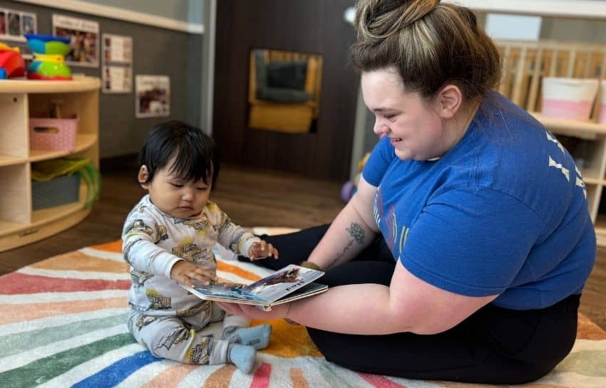 Children in our infant classrooms are typically between 0-12 months old, though transition timing can vary.